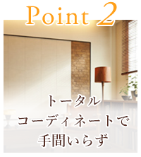 お部屋の目的に合わせたコーディネートもよし、お住まい全体のトータルコーディネートもよし。お客様の自由なスタイルでのインテリアづくりをサポートさせていただきます。